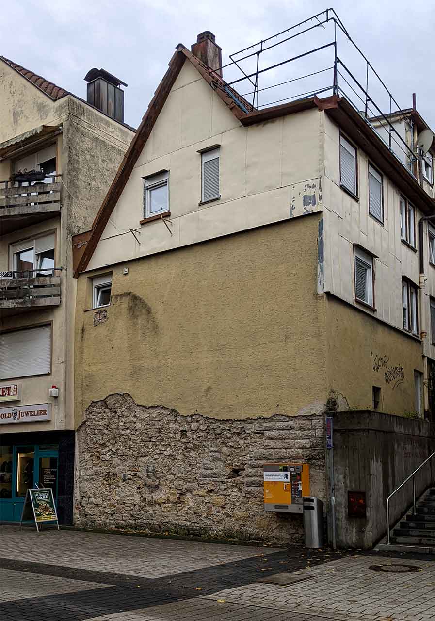 An der zur Grabenstraße zeigenden Fassade ist ein Teil der alten Backnanger Stadtmauer zu sehen. Die Reste der Backnanger Stadtmauer finden sich auch noch an zahlreichen anderen stellen der Altstadt. Die Stadtmauer ist in der Liste der Kulturdenkmale in Baden-Württemberg aufgeführt.
